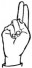 На ћирилици написано ЊЕГОСЛАВ КИЦУЖИЋ састоји се из 15 слова [?]. Исписано ћириличном једноручном азбуком за глувонеме: